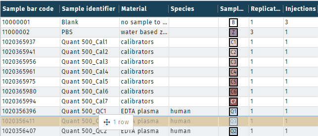 ⓘ To sort samples, click on the table's header. Samples are added to the plate in the same order as shown in the list.